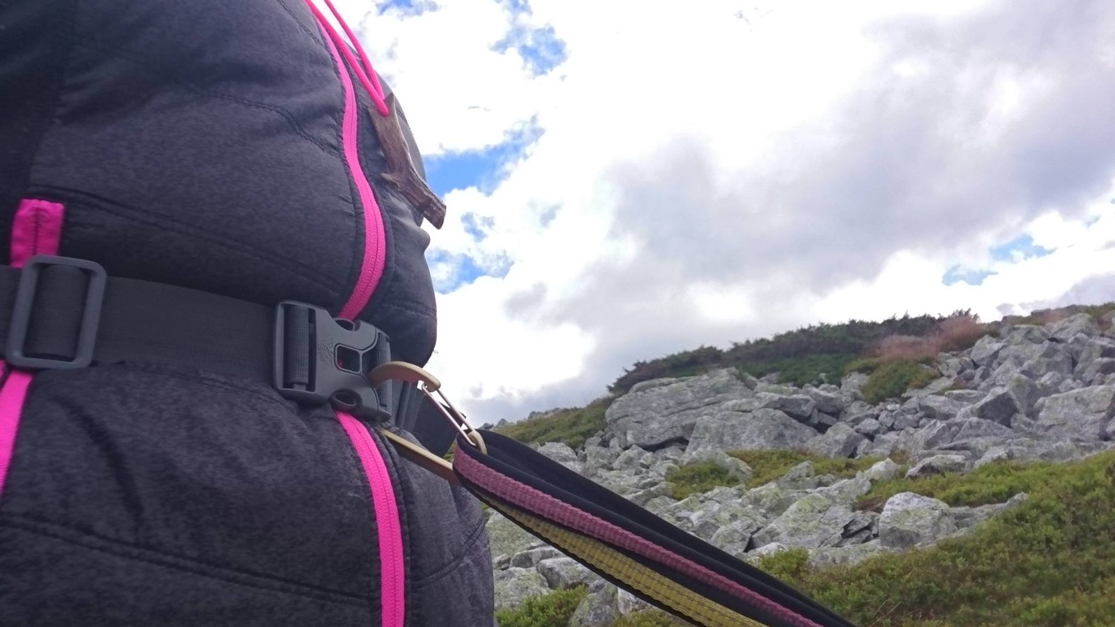 – Sätt fast din hund med karbinhaken i ditt midjebälte.